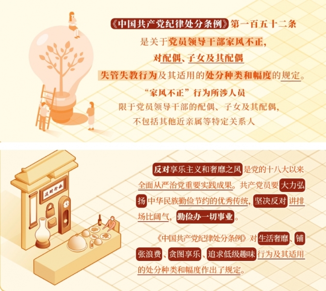 清風(fēng)水投丨黨紀(jì)學(xué)習(xí)教育?:對(duì)配偶、子女及其配偶失管失教行為的處分規(guī)定 對(duì)堅(jiān)決抵制享樂主義和奢靡之風(fēng)行為的紀(jì)律規(guī)定