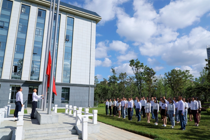 當(dāng)天上午9時(shí)許,活動(dòng)在牛欄江公司駐地拉開序幕。在近30名黨員干部職工的目光中,3名著裝整齊、步伐矯健的青年升旗隊(duì)員護(hù)衛(wèi)鮮艷的五星紅旗登上升旗臺(tái)。隨著雄壯激昂的《義勇軍進(jìn)行曲》響起,五星紅旗冉冉上升、迎風(fēng)舞動(dòng),成為晨空下最絢爛的一道色彩。大家高唱國(guó)歌、行注目禮,目送國(guó)旗升至桿頂。